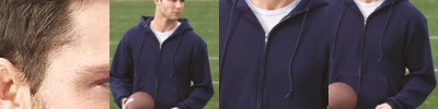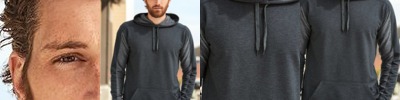 8.2 oz., 55/45 cotton/polyester; Matching hood; Stitched V neck; Black drawstring; Rib cuffs and hem; Pouch pocket;