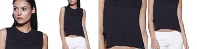 - High-low back drape; Easy, drapey fit