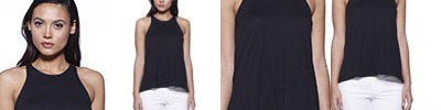 4.3 oz., 52% cotton 48% polyester, 30 singles; Ultra-fine cotton blend; Fashion fit; Side seams; Racerback | exposed shoulders; Tear-away label; Made in a w.r.a.p. certified factory;