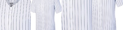 100% polyester smooth pinstripe knit ; Wicks moisture away from the body ; Pad print label ; Set-in sleeves ; Full-button jersey ; Buttons spaced for easy embellishment ; Double-needle hemmed sleeves and fishtail bottom.;