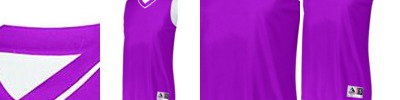 - Two color jersey side inserts, sleeve cuffs and V-neck