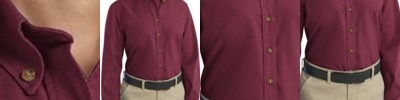 - Two-piece, lined, banded, topstitched, button-down collar
