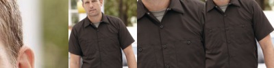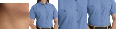 - 65/35 poly/cotton with soil-release finishOpen collar with sewn-in staysMetal collar gripper closureMelamine buttonsTwo button-through pocketsBartacked pencil stall on left pocket