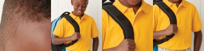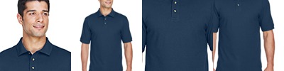 100% polyester pique, 4.1 oz./yd2/140 gsm; Moisture wicking, antimicrobial and UV protection performance; matching flat knit collar;