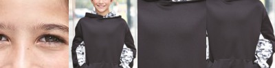- Double-ply hood with grommets and matching drawstring, front pouch pocket