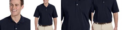 6.3 oz./yd2 / 215 gsm, 100% combed cotton pique with EZ Cool wicking technology; no-pill, no-fade, no-shrink, no-curl collar, no-wrinkle performance; Active fit; Matching flat-knit collar; Two-button placket;