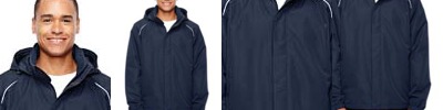 - Raw-edge hood opening, pocket seams, cuffs, waistband, zipper placket and side seams