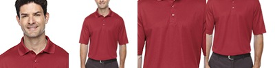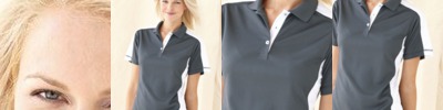 100% polyester pique, 4.1 oz./yd2/140 gsm; Moisture wicking, antimicrobial and UV protection performance; matching flat knit collar; heat seal label;