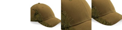 100% cotton; Green camo is 65% polyester / 35% cotton; 6-panel, Low-profile; Four-row stitching on visor; 3 1/8" crown; Unstructured; Matching undervisor; Antique brass buckle closure;