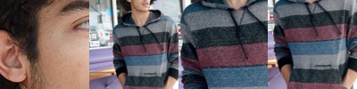 The pullover goes trendy with an attractive V-neck, raw-serge edges in fabulous colors.